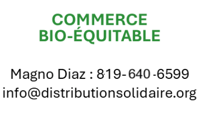 Distribution Solidaire est un organisme à but non lucratif impliqué dans le commerce bio-équitable le développement international et depuis 2023 l'appuie aux besoins des personnes étrangères souvent sans statut d’immigrant et sans ressources matérielles et financières.
